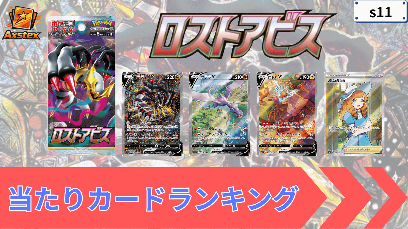 ロストアビスの当たりカードランキング|買取相場・BOX価格・封入率まとめ【最新】 当たりカードランキング 2026.03.14 ロストアビスの当たりカードランキングは現在準備中です。本記事では、UR/SA/SRなどの注目カードをランキング形式で紹介します。先にパックの排出傾向を体感したい方は、下記のパック開封シミュレーターをご利用ください。カードリスト公開後、順次ランキングを更新していきます。