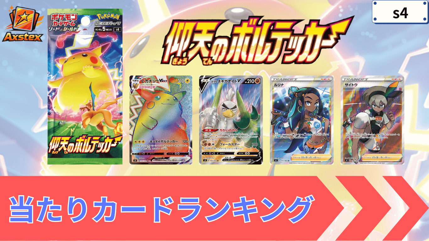 仰天のボルテッカーの当たりカードランキング|買取相場・BOX価格・封入率まとめ【最新】 当たりカードランキング 2026.04.05 仰天のボルテッカーの当たりカードや高額ランキングは現在準備中です。相場・封入率・注目カードをまとめて解説予定なので、公開まで少々お待ちください。