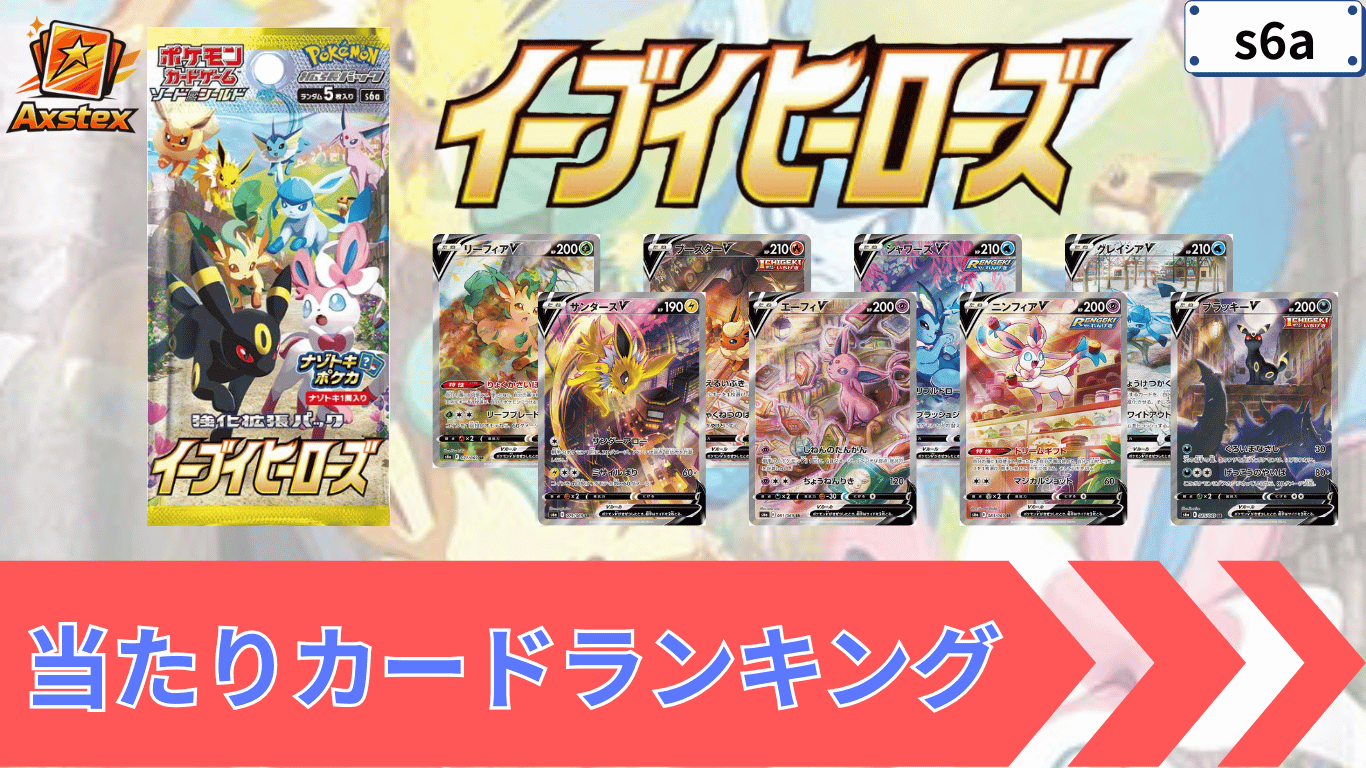 イーブイヒーローズの当たりカードを、最新の相場価格をもとにランキング形式でまとめました。